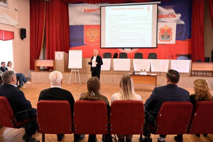 Олег Маршалко, председатель ФПОК, начал общение с истории профсоюзного движения в мире и России, поделился личным опытом работы в первичной профсоюзной организации Западно-Сибирского металлургического комбината, напомнил о достижениях в социально-трудовой сфере, инициаторами которых стали профсоюзы советского и российского периодов.