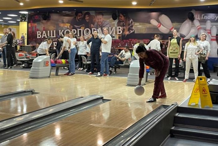 Участники состязались не только в умении выбивать страйк, но и в творчестве. Перед тем, как выйти к своим дорожкам и взять в руки шары, они показывали домашнее задание – представление команды.