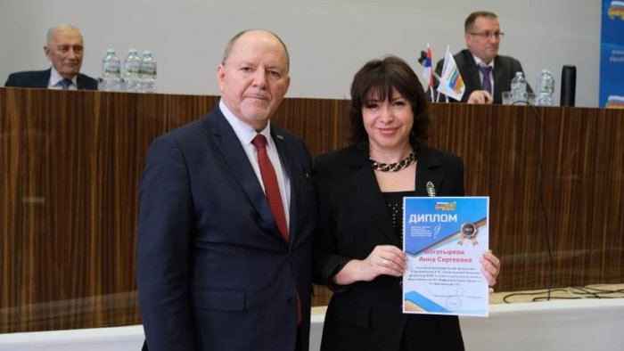 Председатель Профсоюза Ю.Б. Офицеров вручил награды победителям различных профсоюзных конкурсов, результаты которых были подведены 14 апреля на заседании Президиума ВЭП.